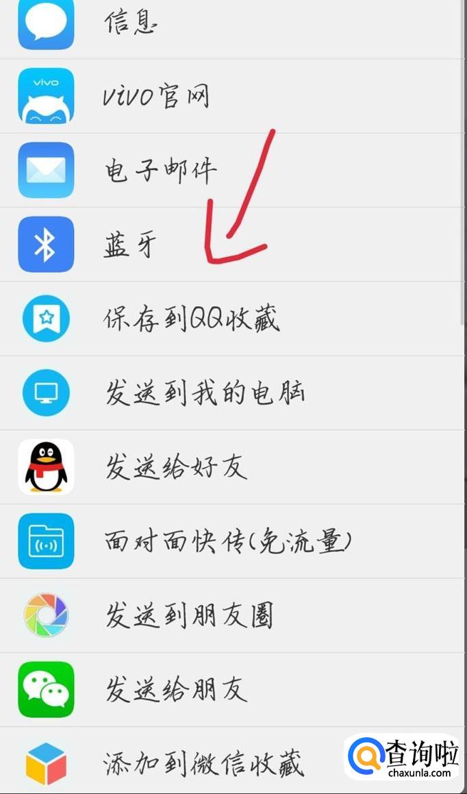 会出现一个新的界面,如图1所示。点击蓝牙这个选项,如图2箭头所示。再点击设备就可以分享出去了。