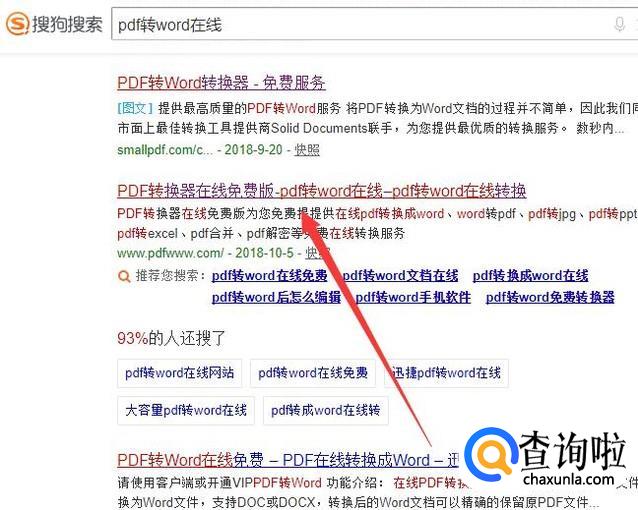 进入之后,搜索“PDF转Word在线”,点击并进入,如图所示。