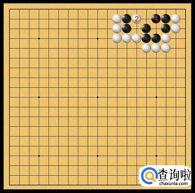 白棋并不甘心黑棋就这么轻易做活。白棋于白2处打入。白2的打入也很巧妙,向上可以连接白棋,向下可以渡过。如图所示。