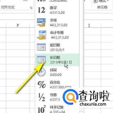 这里就有单元格格式的设置框,当前显示的就是日期。但日期有短日期和长日期之分。鼠标点击下拉按钮。