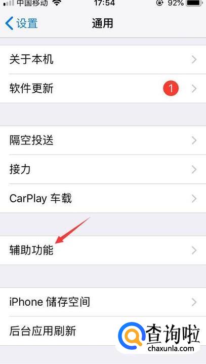 然后我们会看到有一个辅助功能的入口,点击一下。