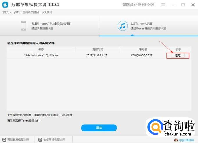 如果旧手机上的部分数据丢失,那么可以借助万能苹果恢复大师软件,扫描iTunes已经备份好的旧手机资料。