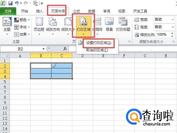 然后我们点击工具栏中的页面布局,然后我们点击打印区域,弹出的界面,我们点击设置打印区域;