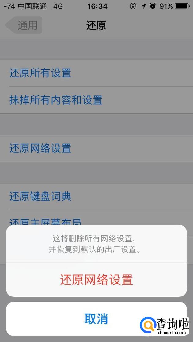 我们点击还原网络设置,并输入手机密码进行还原即可