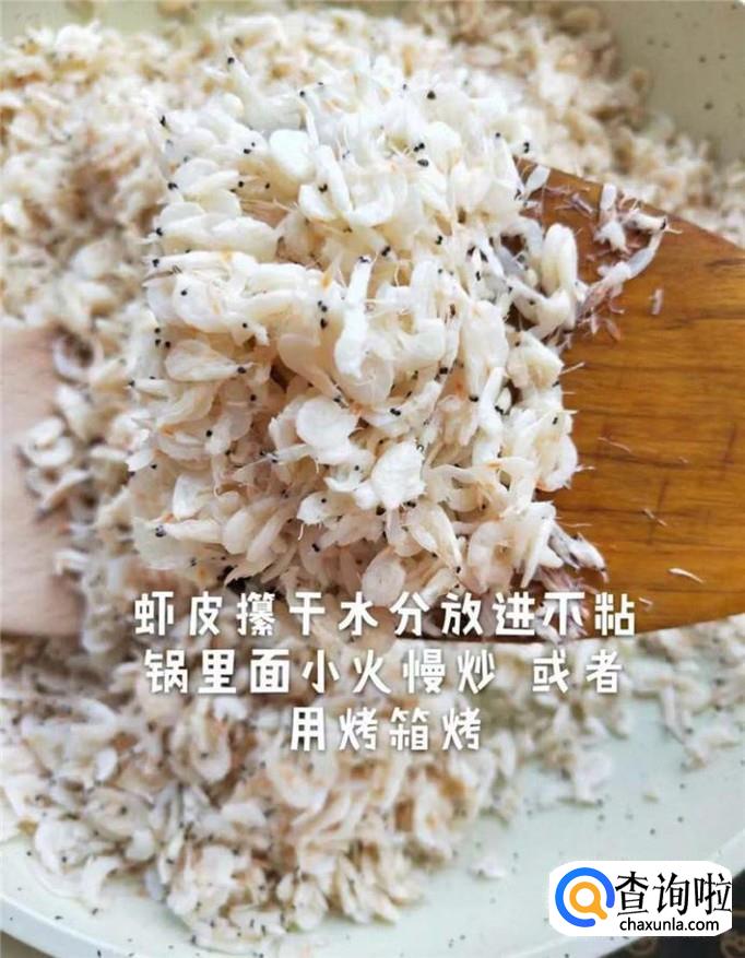 接着把虾皮炒到全干,放凉,如下图所示。