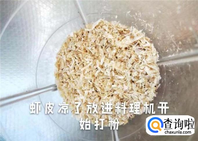 然后把放凉的虾皮倒进料理机,开始打粉,如下图所示。