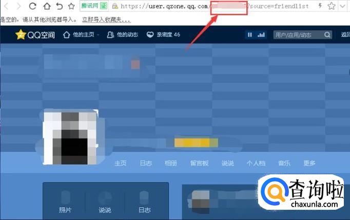 最后,把网址中的QQ号(如下图所示,红框圈起来的部分),换成想要进入的QQ号,点击enter键就可以进入想要进入的QQ空间了。