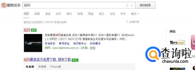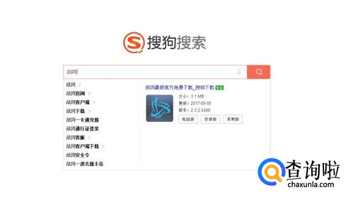 打开搜狗浏览器,搜索战网