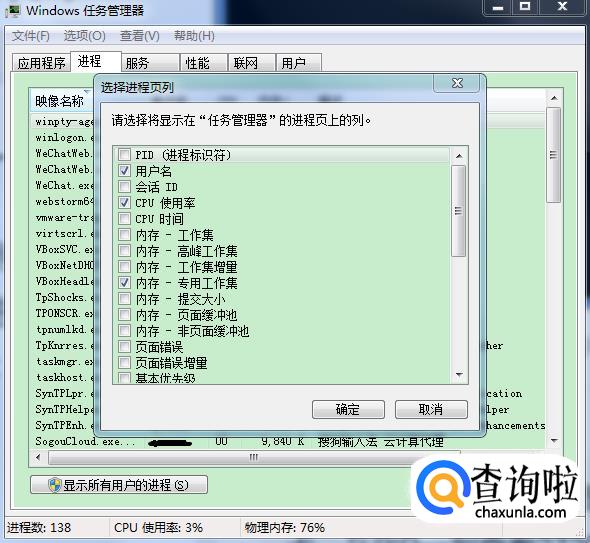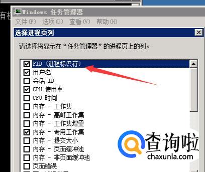 记住这PID,例如我这里是1244。然后我们打开任务管理器-查看-选择列。