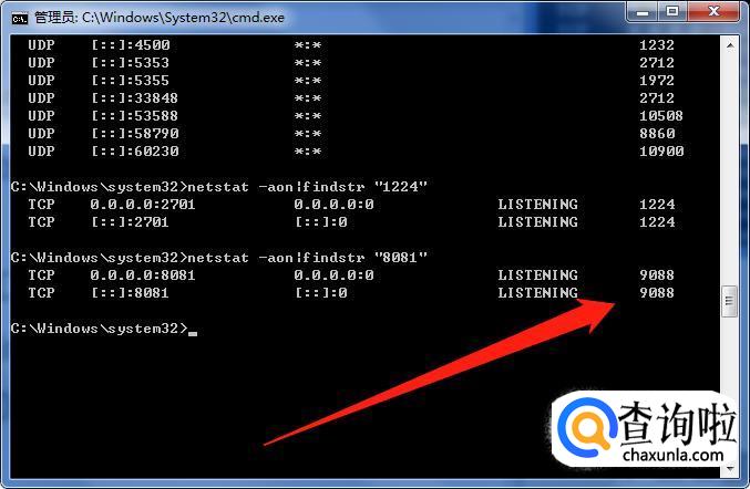 回车执行该命令,最后一位数字就是 PID, 这里是 9088。