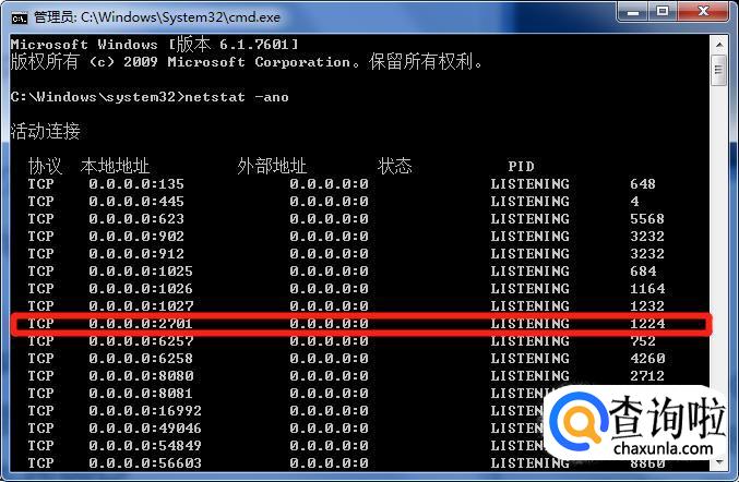 在列表中我们观察被占用的端口,比如是 1224,首先找到它。