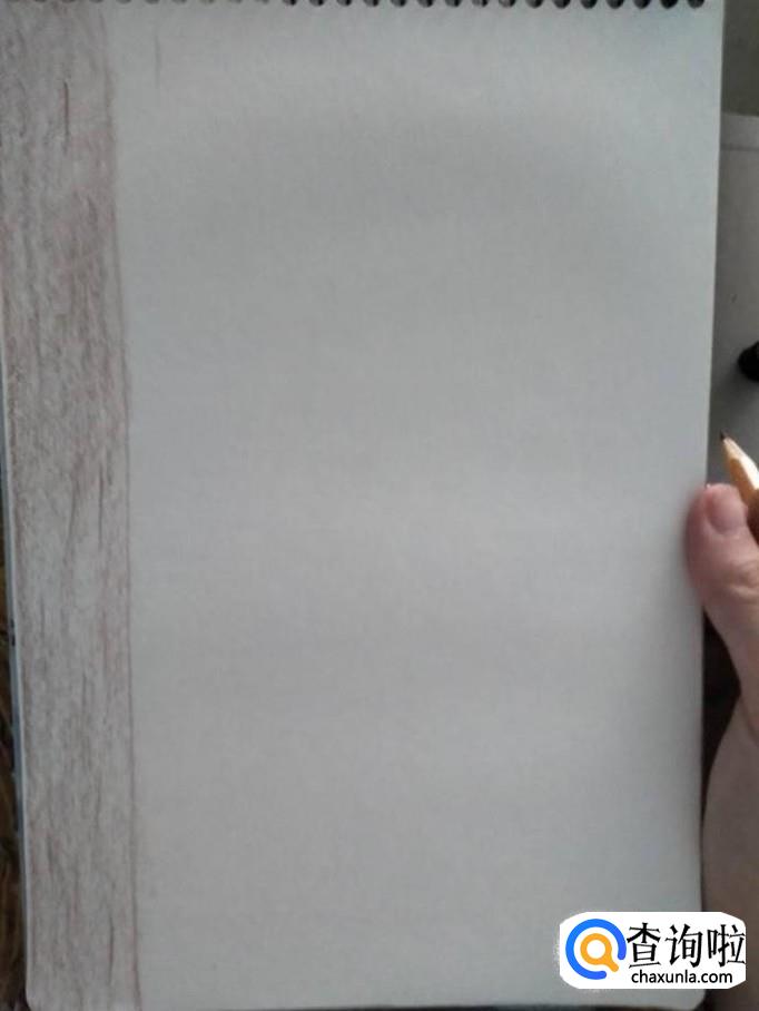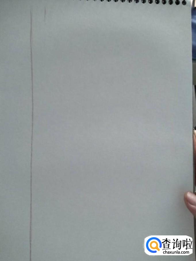 在素描纸的最左侧画一条竖线,这条竖线其实是一棵树的树干。