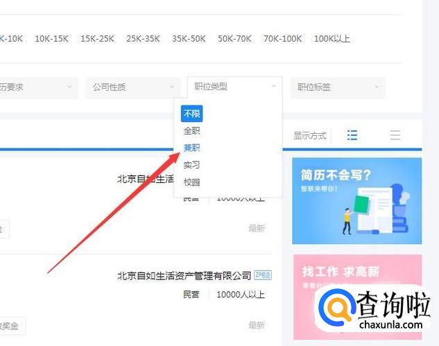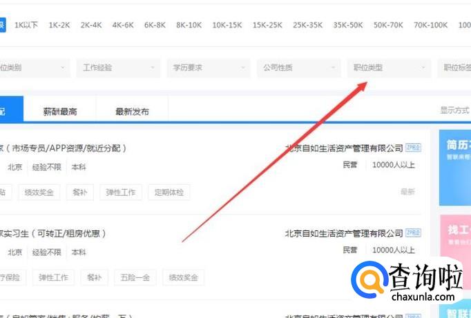 注册完毕之后登陆到里面去。然后找到职位类型,然后点击进入,如下图