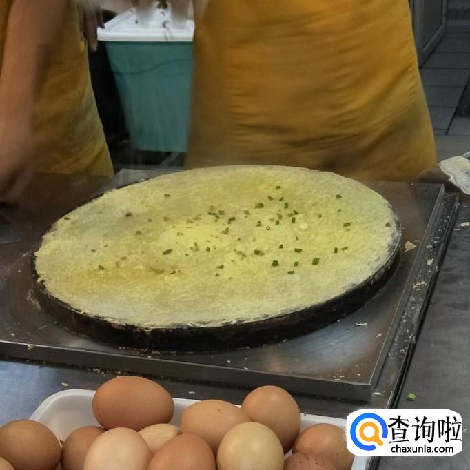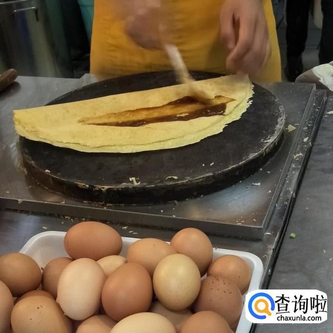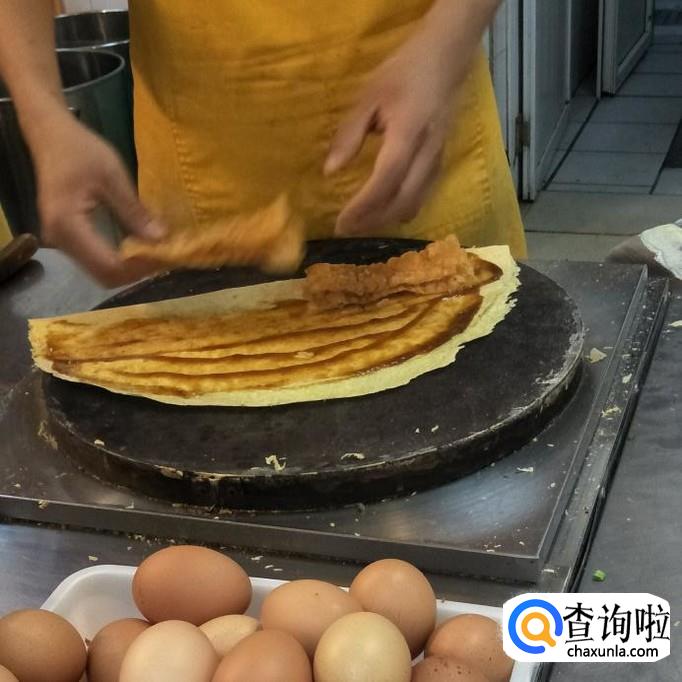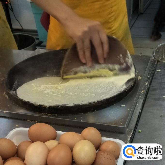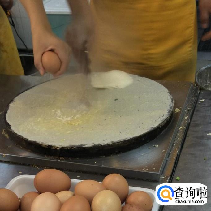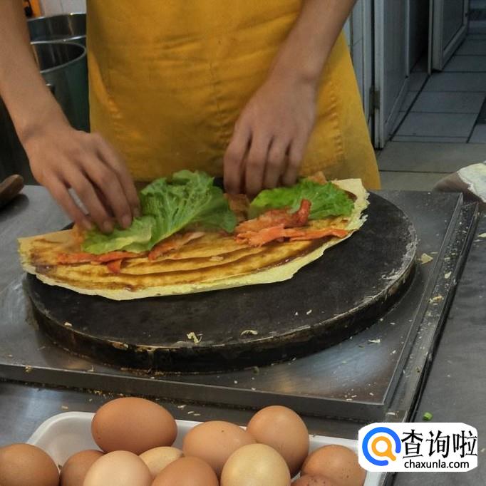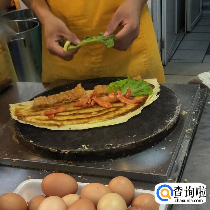 面粉泥,生菜,鸡蛋,培根,葱,辣椒酱等