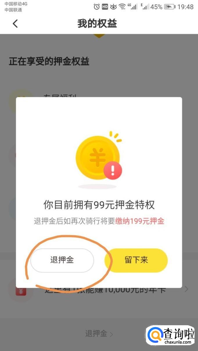 接下来,不停地点击“退押金”选项。最后就成功了!