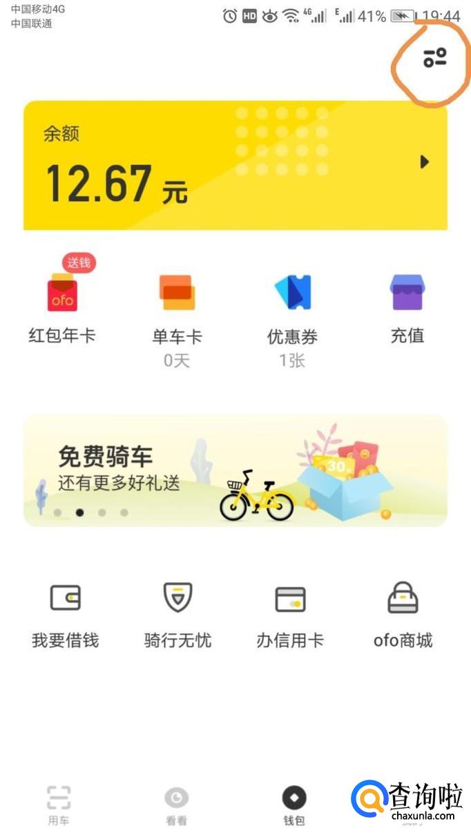 首先打开ofo小黄车APP,然后登陆你的个人账号。