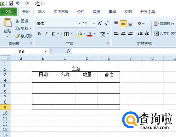 之后我们输入主题等一些信息,然后将字体居中,这样我们就将表格给制作好了。