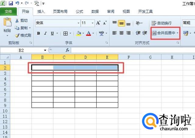 之后我们选中图示中的区域,然后我们点击合并后居中;