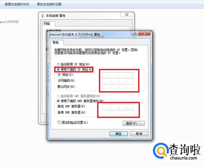 点击“使用下面的ip地址” ,在如图所示红框标注的区域内可自行设置IP地址。