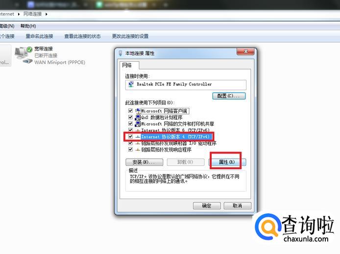 勾选“Internet协议版本4(TCP/IPv4)”,点击“属性”。