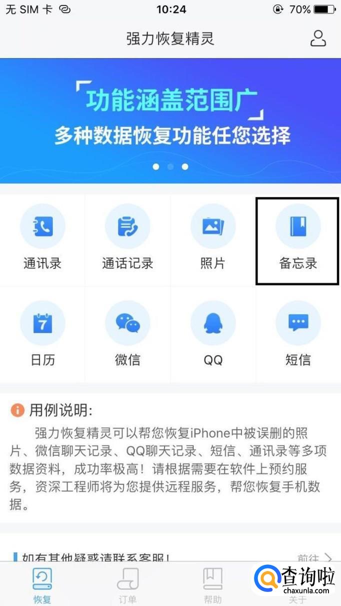 点击“备忘录”,然后进行恢复操作