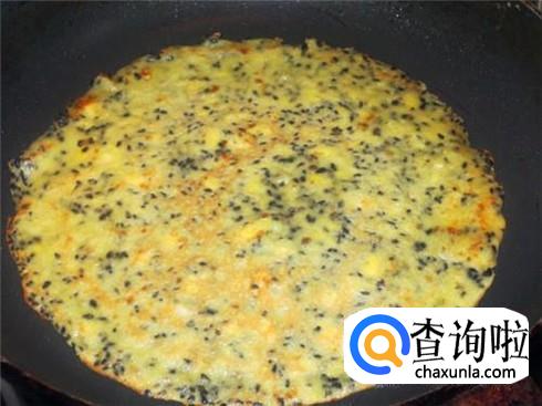 用细筛子筛一些面粉放进鸡蛋液里面,再次搅拌均匀,有熟黑芝麻的话撒一些进去。
