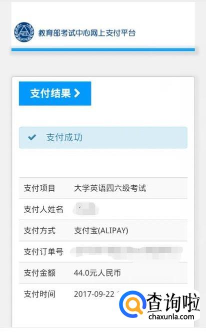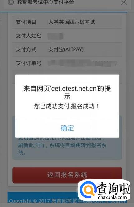 选择支付方式,支付成功后返回报考页面,网页会显示支付成功。