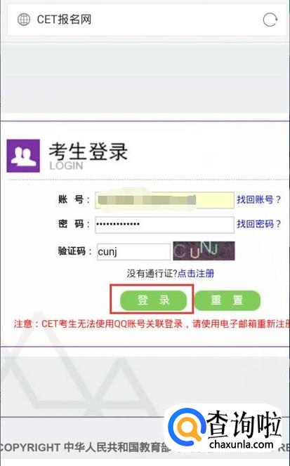 进入报名系统后,在弹出的窗口填写好自己的账号密码,点击“登录”,如图 。