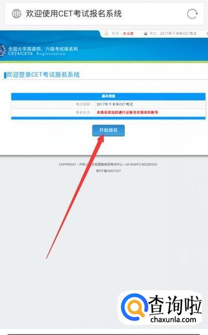 登录成功后,进入CET考试报名网,点击“开始报名”。
