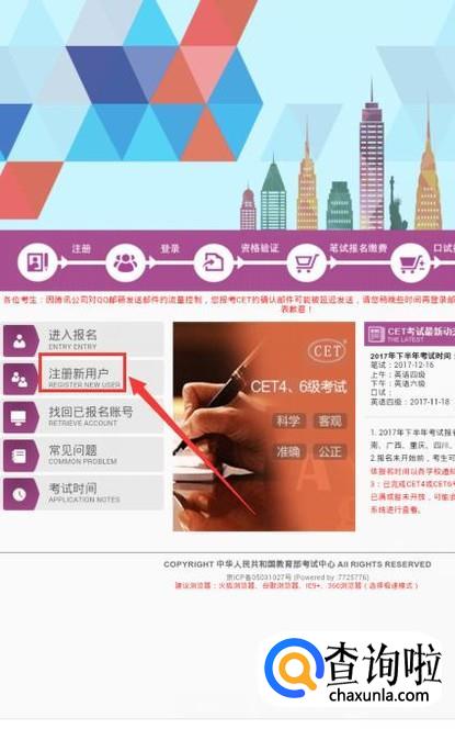 如果是首次登录需要进行注册,点击“注册新用户”,用用QQ邮箱进行注册。如果已经登录过,直接点击“进入报名”,如图。
