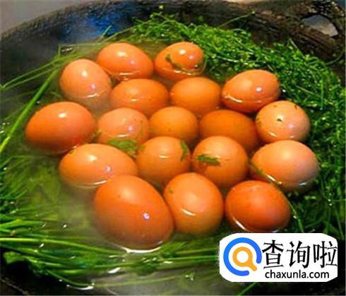 把清洗干净的艾叶放进锅里,加上适当清水,大火烧开,然后把鸡蛋捞出来放进艾叶水里一起煮,煮开之后把鸡蛋壳敲开然后小火慢慢的煮二十分钟。