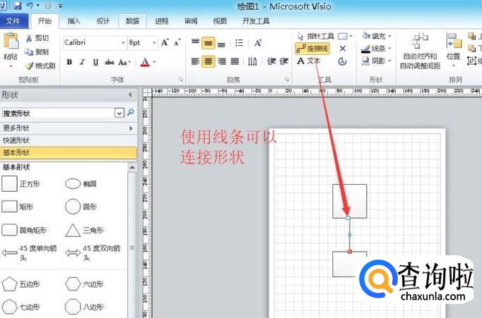 另外如果两个图形之间需要进行连接的话可以使用顶部的连接线工具,如下图所示