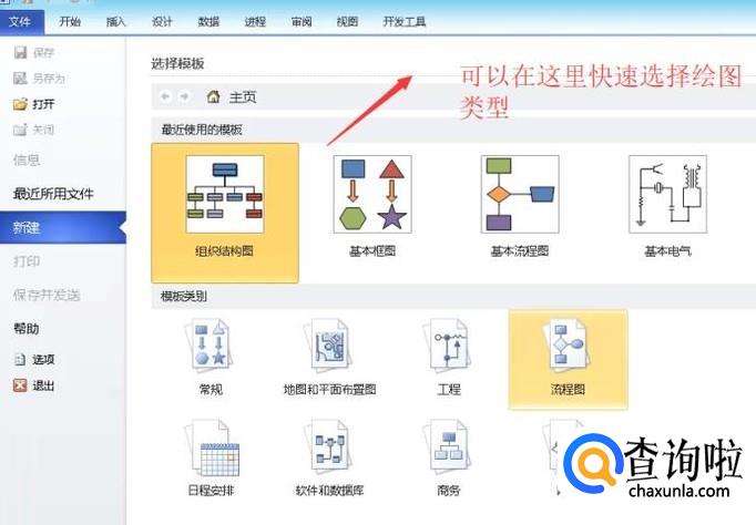 首先我们打开Visio软件,会默认进入选择模板界面,在这里我们可以快速选择要绘制的图形模板类型,如下图所示