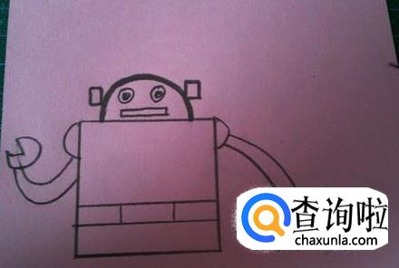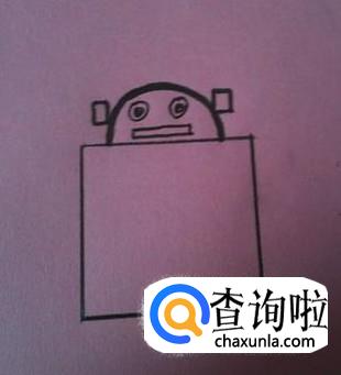 再画一个半圆,像手提袋,又像锁,不过这是机器人的头。