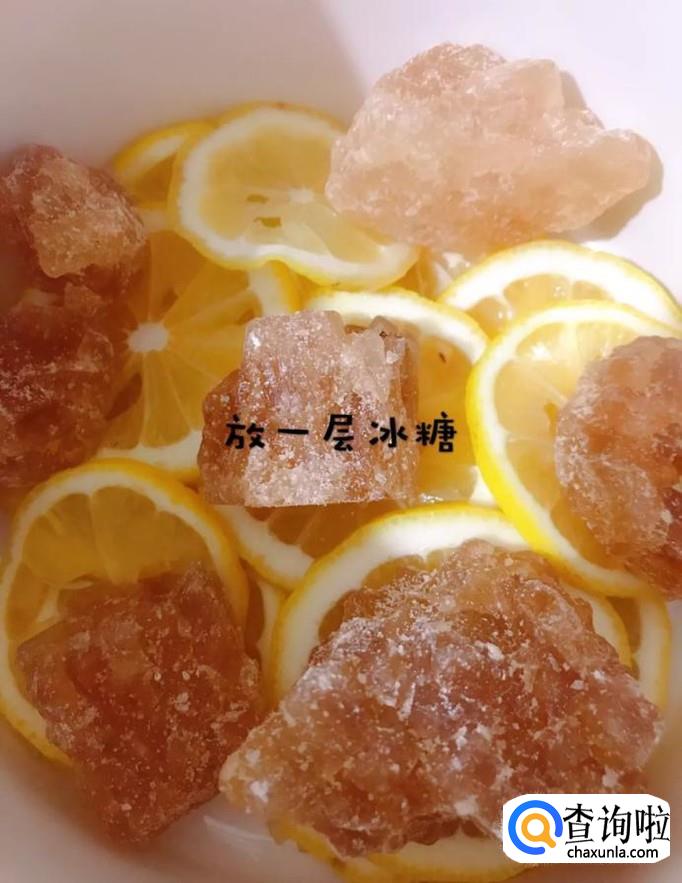 接着用一层柠檬一层冰糖的方式把材料放进砂锅,如下图所示。