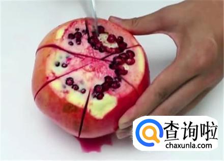 顺着石榴的那些纹路往下切,这样不会切到石榴籽。