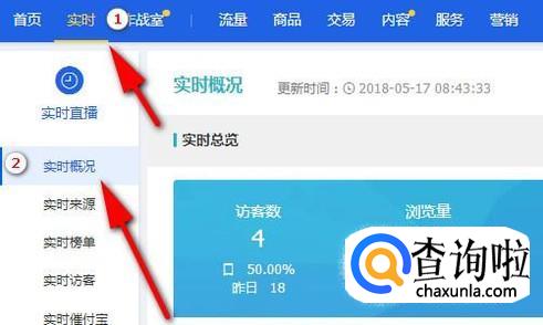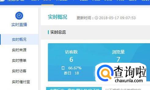 在这里,显示“访客数”与“浏览量”这两组数据;实时数据:访客数为4;浏览量为5