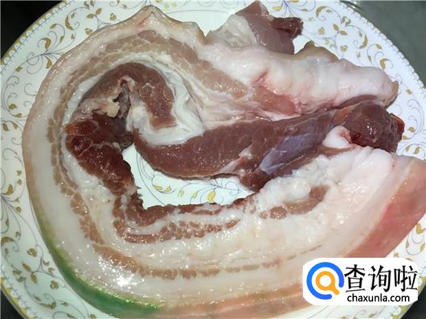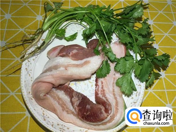 准备好一条肥瘦相当的五花肉,一根香菜。