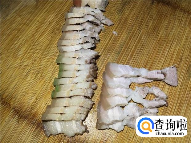 放凉后的五花肉,切成薄片。