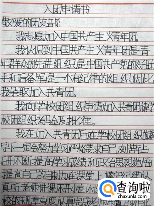 而且整一个入团申请书必须字迹工整,不能有错别字,更不能有涂改,如果写错一个字,只能重新写。