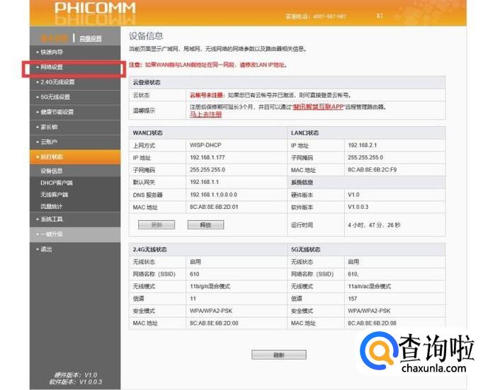 如图依次点击基本设置,网络设置,接下来进入wan设置,注意不要进入lan设置,
