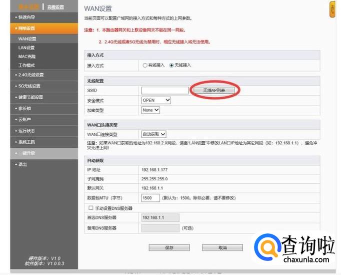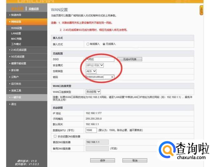 进入wan设置后,将原来的有线连接,更改为无线连接,才能放大信号.