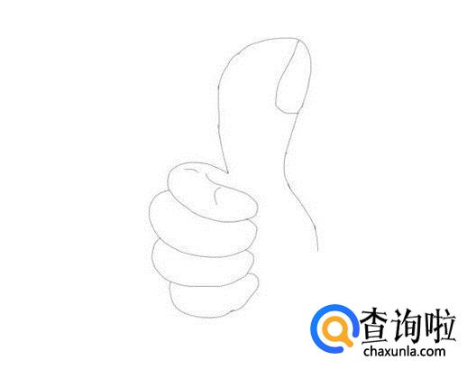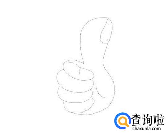 先画出点赞手的竖起的大拇指,然后在拇指上画出指甲盖,如图所示: