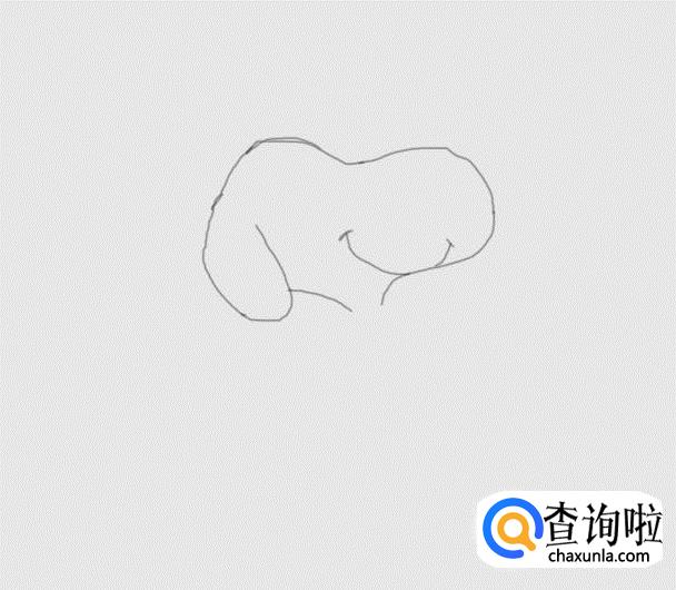 首先我们画出史努比的头部,在头部上画出史努比的嘴巴,然后再在头部上画出史努比的耳朵,如图所示: