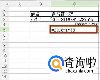 接着把单钱的年份减去小红出生的年份并点击回车键,如下图所示。