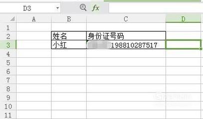 然后在表格中输入以下带有个人身份证信息的内容,如下图所示。