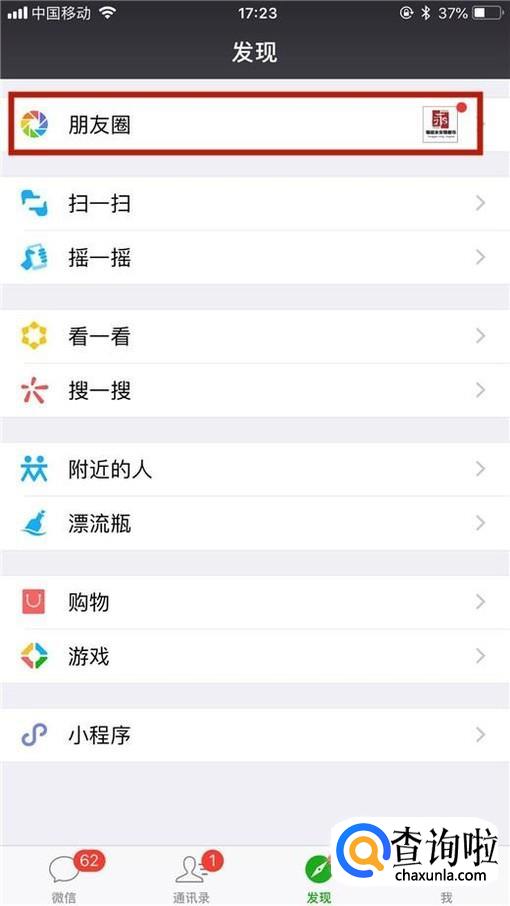 首先点击微信中的朋友圈,如下图所示。