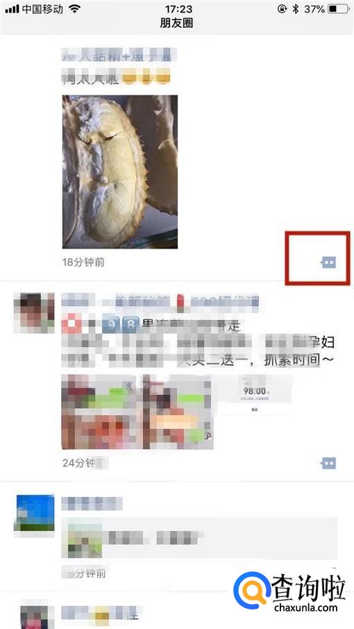 然后点击要点赞的好友朋友圈下方的两个点,如下图所示。