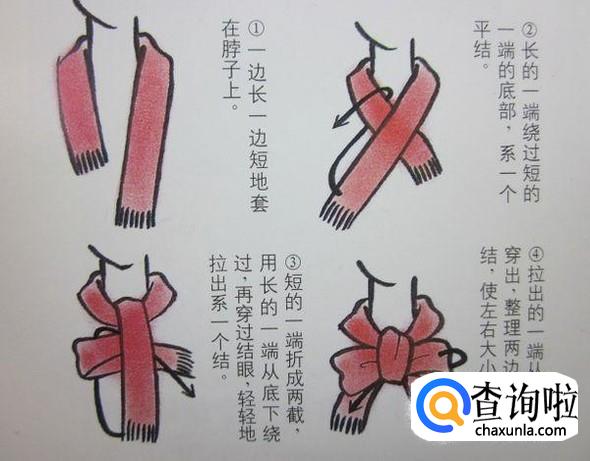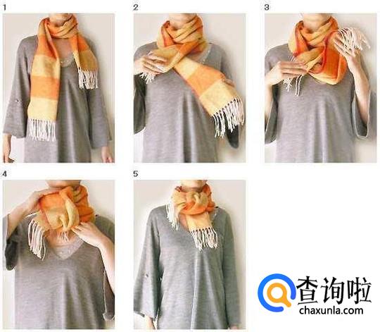 打结款1:据说这是使围巾最温暖的围法,可以使围巾把脖子包的满满的。