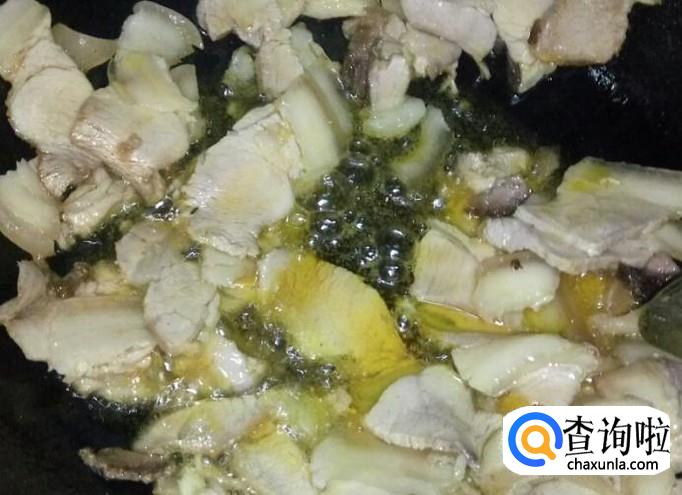 锅中热油。比平时炒菜少些,因为猪肉可以煸出油。